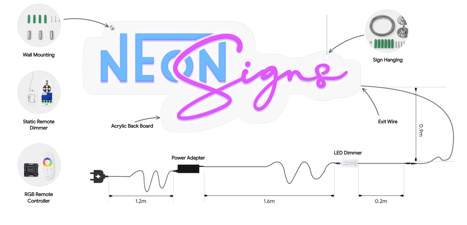 You can refer to the image below to know every detail of your final neon product.